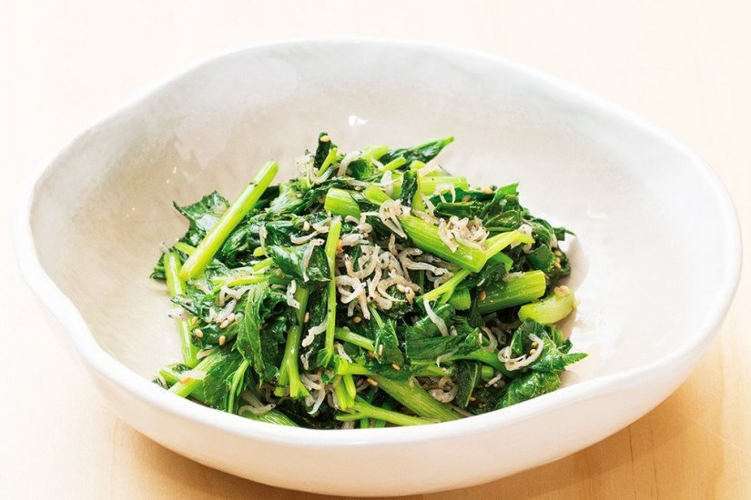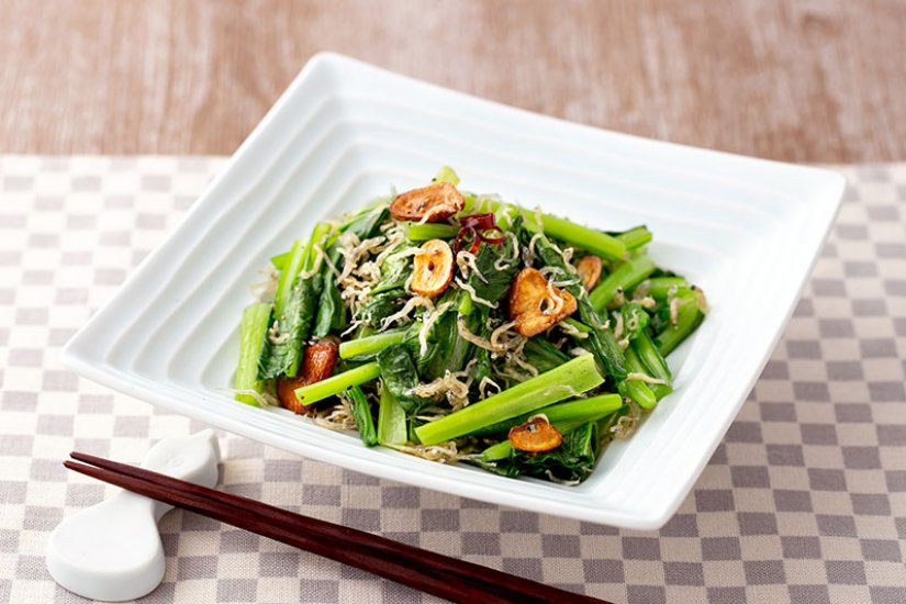小松菜としらすのガーリック炒め