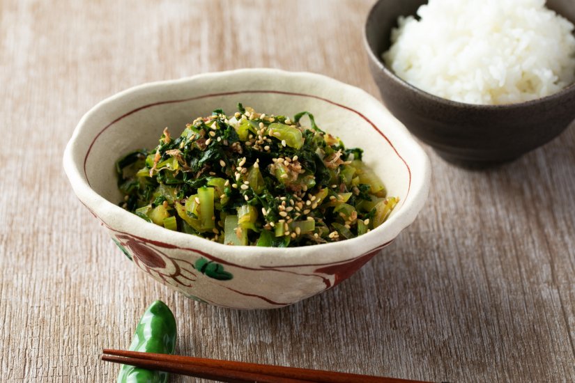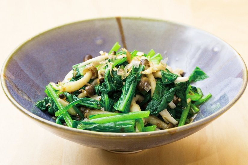 ごせき晩生小松菜としめじのおかか和え