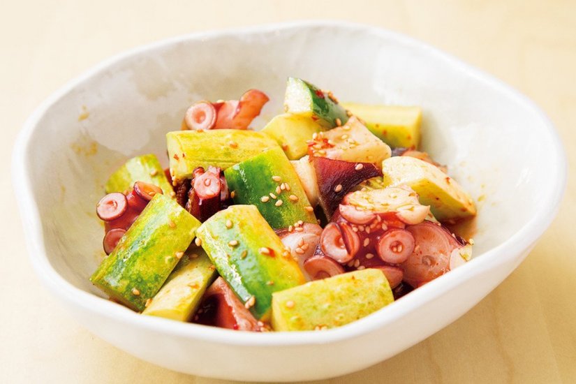 馬込半白キュウリとタコのピリ辛和え