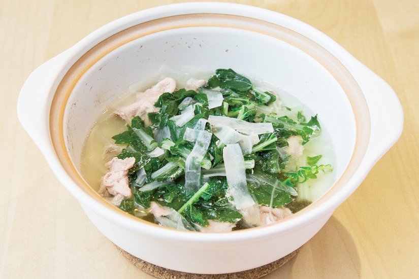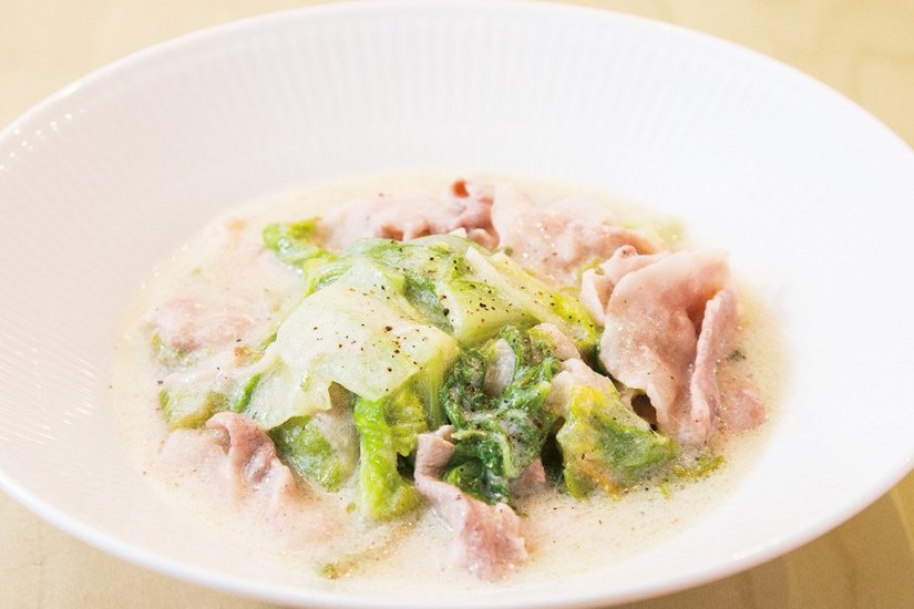 シントリ菜と豚バラ肉の重ね豆乳クリーム煮