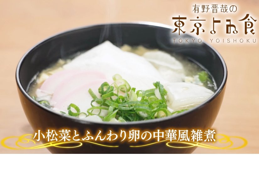 東京産食材PR動画「有野晋哉の東京よゐ食」コラボレシピ ~小松菜とふんわり卵の中華風雑煮~