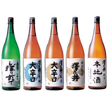 澤乃井(大吟醸凰、木桶仕込彩は、大吟醸、純米大吟醸、純米本地酒、特別純米、純米大辛口、純米原酒、ぎんから、元禄酒、しぼりたて、本醸造大辛口、本醸造生酒、生貯蔵酒)