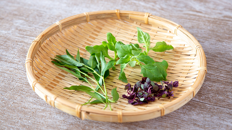 東京都では「足立のつまもの」として、穂ジソ・ツル菜・木の芽・鮎タデ・あさつき・メカブ・紫芽(むらめ)の7種類が生産されています。狭い農地でも栽培が可能なため、現在も住宅地が広がる中に畑が点在し都市農業の一翼を担っています。
