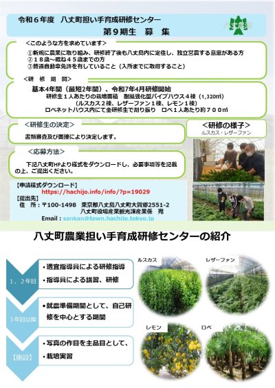 八丈町では新たに独立して営農したい意欲ある農業の担い手を育てるために、八丈町農業担い手育成研修センターで研修を行っ...