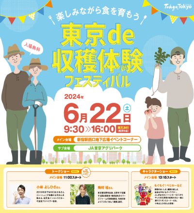 東京産農産物に触れ、練馬区内の畑を訪れるイベントとして、東京de収穫体験フェスティバルを初開催します。体操のおにい...