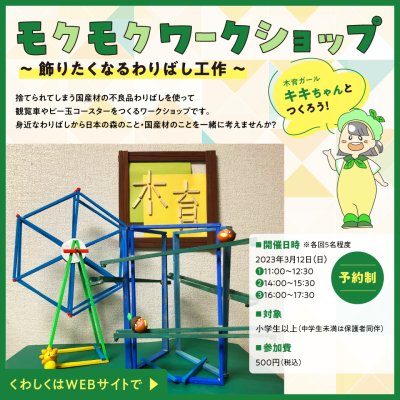 木育ガールキキちゃんとつくろう!捨てられてしまう国産材の不良品わりばしを使って観覧車やビー玉コースターをつくるワー...