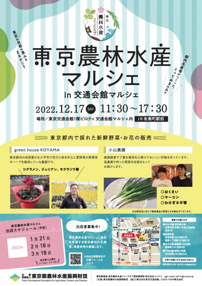 東京農林水産ファンクラブでは毎月第3土曜日に交通会館マルシェに特設ブースを出店して、都内生産者がつくった、とってお...