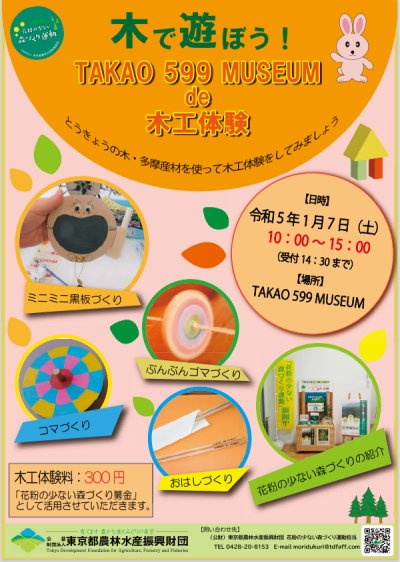 令和5年、初めてのイべントは、TAKAO 599 MUSEUMで「とうきょうの木・多摩産材」を使って木工体験を行い...