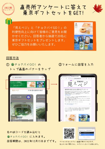 東京都農林総合研究センターでは、庭先直売所の売り場をリアルタイムで見られるシステム「見えベジ」を、直売所情報サイト...