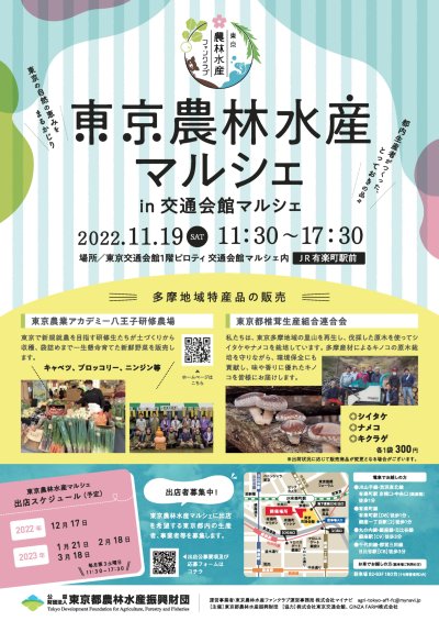 東京農林水産ファンクラブでは毎月第3土曜日に交通会館マルシェに特設ブースを出店して、都内生産者がつくった、とってお...