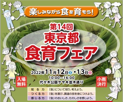 11月12日(土)と13日(日)まで、「第14回東京都食育フェア」を代々木公園にて開催します。3年ぶりの実地での開...