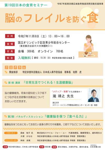 令和7年11月8日(土)国立オリンピック記念青少年総合センターにおいて「第18回日本の食育セミナー(共催:東京都、...