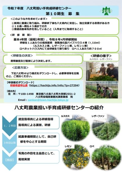 八丈町では新たに独立して営農したい意欲ある農業の担い手を育てるために、八丈町農業担い手育成研修センターで研修を行っ...