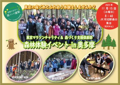 【参加者募集】「森林体験イベント in 奥多摩2025」 【11月15日(土) 開催】 東京の森で、木...