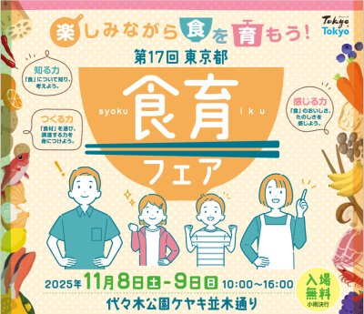 11月8日(土)から9日(日)まで、「第17回東京都食育フェア」を代々木公園にて開催します。食に関するクイズやパフ...