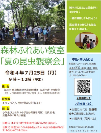 東京都農林水産振興財団では、都民の皆様に森林の魅力を伝え、親しみを持っていただくため、森林浴登山・森林ふれあい教室...