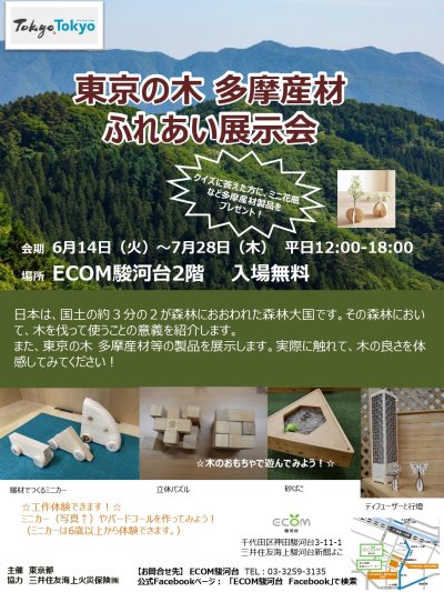 東京の木 多摩産材のにおいにふれあってみよう!6/14(火)から御茶ノ水駅近くのECOM駿河台で、多摩産材と花粉の...