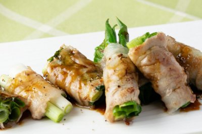 フライパンで焼くときは、肉の巻き終わりを下にして焼くと、ネギに肉がしっかりくっつきます。