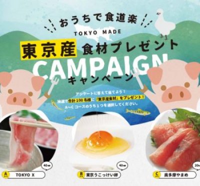 (公財)東京都農林水産振興財団では、アンケートに答えて東京産の食材を100名様にプレゼントするキャンペーンを実施中...