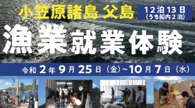 太平洋に浮かぶ楽園・自然豊かな島小笠原父島にて、漁業就業体験を開催します。ぜひこの機会に小笠原父島の漁師の仕事・暮...