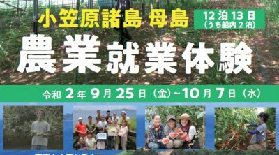 手付かずの自然が残る東京都最南端の島小笠原母島にて、農業就業体験を開催します。ぜひこの機会に小笠原母島の農家の仕事...
