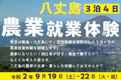 東京の離島・八丈島にて、3泊4日の農業体験を開催します。 農家になりたい!畑仕事が好き!離島で働きたい!などとお...