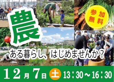 12月7日(土)に農と野菜のトークライブを開催します!農業体験農園を通じて自分で育てた野菜をおすそわけしたり、採れ...