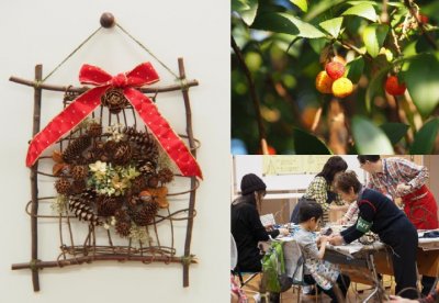 開催日時:令和元年12月7日(土)9:30 ~ 15:00(予定)木の実やつるを使って、自分だけの「クリスマス壁飾...
