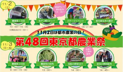 東京都では、今年も東京の農業を広く都民の皆さんにご紹介するイベント「東京都農業祭」を開催いたします。都内産の農畜産...