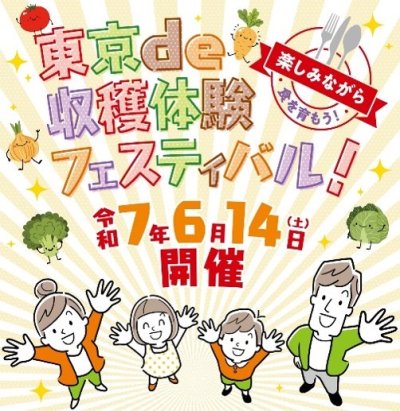 東京産農産物に触れ、体験するイベントとして、東京de収穫体験フェスティバルを開催します。野菜の収穫体験、調理体験や...