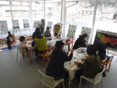 高尾599ミュージアムで、花粉の少ない森づくり(※)を紹介するパネルの展示や東京の木 多摩産材を使った木工体験(箸...