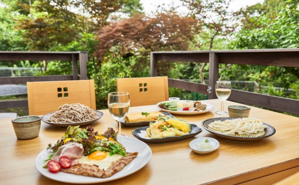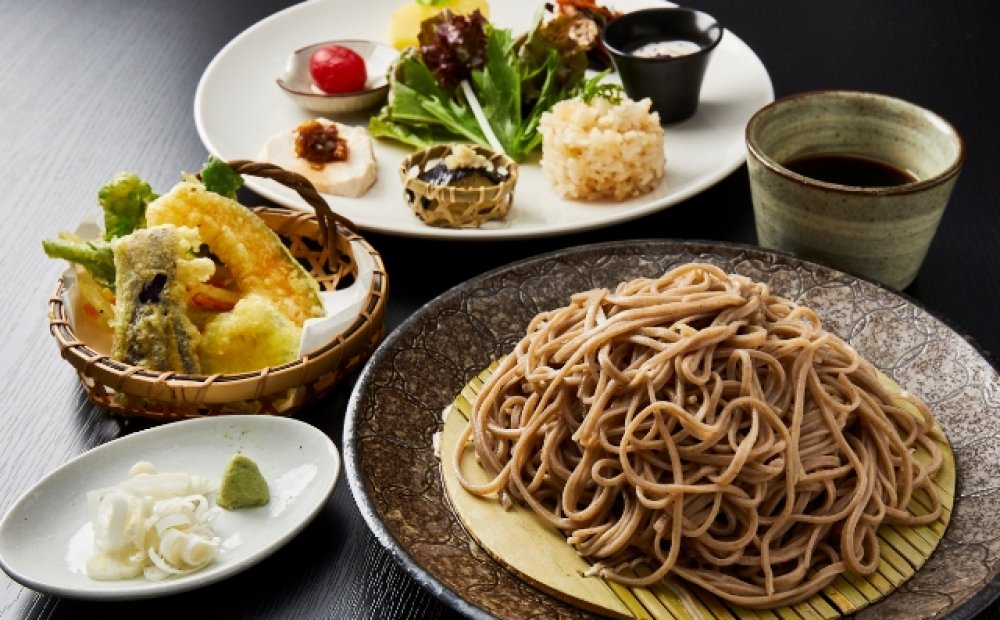 稀星(きらら)セットの前菜プレート、天ぷらで使用する野菜・たまご等は、新鮮な青梅産をメインに朝一番で仕入れ、素材の味をいかしたお料理を提供しています。