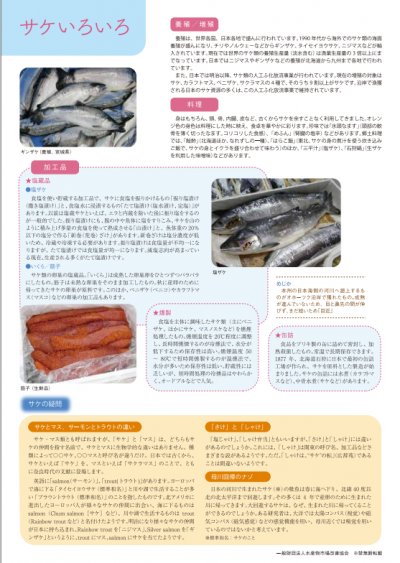 おさかな通信Vol.2では、サケとその仲間(サクラマス、カラフトマスなど)の解説の他、塩ザケ、いくら、筋子など、加工品についても解説します。