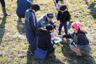 快晴に恵まれたこの日、石坂さんのお話しを聞きながら、親子で七草摘み、薪拾いを体験し、七草粥を作りました。
