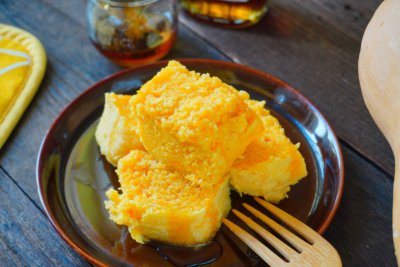 食育レシピは、バターナッツカボチャをたっぷりと使って、お砂糖なしでもしっとり甘い、たまご蒸しパンです。