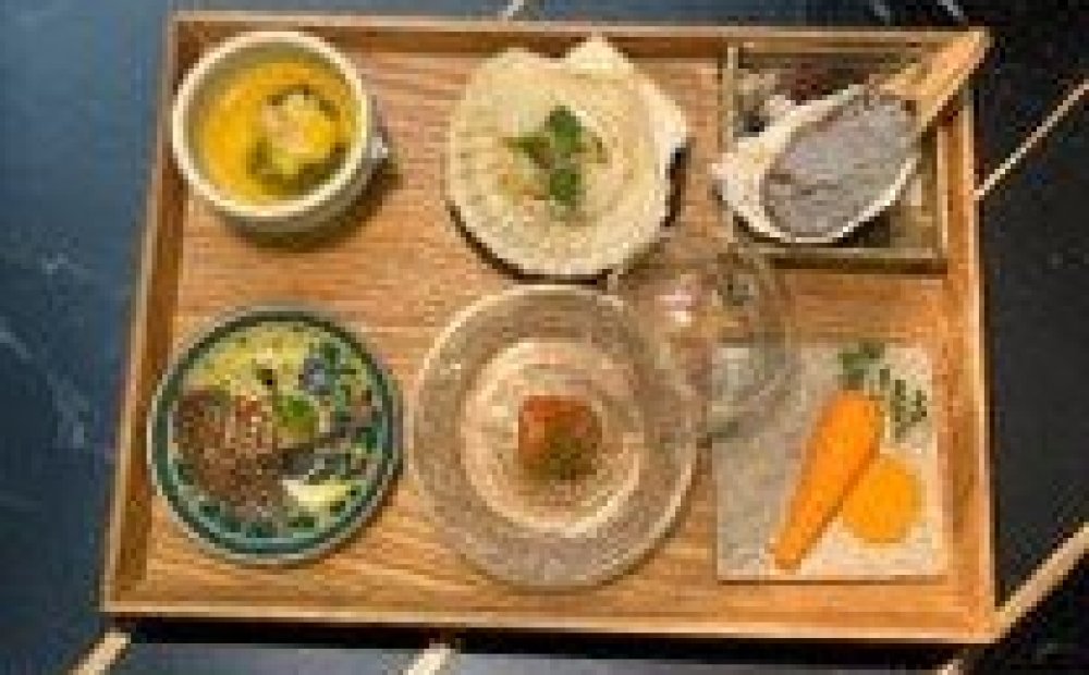 深川名物浅利の佃煮のフレンチスタイルや富岡八幡宮の石に見立てた一皿などコースで楽しんでいただいています。そのなかで東京の食材も頻繁に使い楽しんでいただけるコースを用意しています。