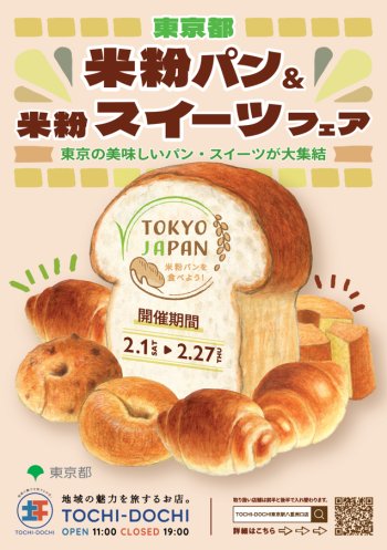 TOKYO JAPAN キャンペーンに参加する店舗のうち、昨年度人気の高かった店舗や新たに出品する店舗、計20店舗の様々な種類の米粉パン・米粉スイーツを販売します。ぜひご注目ください。今回は、月の前半(2 月 1 日~13 日)と後半(2 月 14 日~27 日)で店舗を入れ替えます。それぞれの期間で米粉パン・米粉スイーツをお楽しみください。