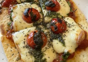 明日葉特有の風味とトマトソースとの相性は抜群!自家製の四角いピザ生地にたっぷりのモッツァレラチーズとフレッシュなトマトをトッピングした一品です。