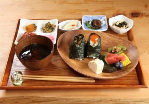 具沢山のおにぎりは食べ応え抜群。明日葉の採れる時期は天むすや佃煮にしてご提供。その日しかない1品との出会いをお楽しみください。