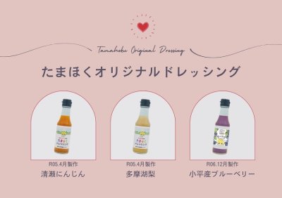 好評を博している、「清瀬人参」と「多摩湖梨」に続く病院オリジナルドレッシングの第3弾です。