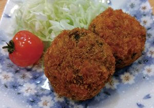 魚を使ったフライ、魚に一手間加えて作ったコロッケ、旬の野菜のフライなど、定番からオリジナルまで、様々な揚げ物を提供しています。(写真ははばのりのコロッケ)