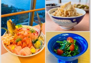 近海でとれたおいしいお魚をご堪能ください。お客様に大人気のたけのこごはんは、おかわり必須の一品。クセが少なく毎日食べたくなる明日葉をご賞味ください。