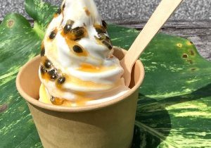 島のフルーツを練りこんだアイスクリームと、島のフルーツがたっぷりかかったソフトクリームです。暑い夏は是非農協にお越しください!