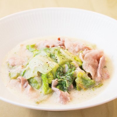 シントリ菜と豚バラ肉の重ね豆乳クリーム煮