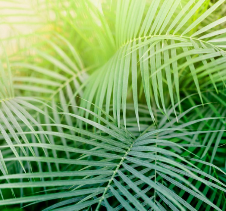 フェニックスロベレニーはリゾート地などでよく目にするヤシの仲間の観葉植物。その葉っぱは花束の添え葉として欠かせない存在です。八丈島へは大正時代にもたらされ、現在では全国シェアほぼ100%。八丈島の園芸を支えてきました。一樹から年間20~30枚ほどの切葉が収穫され、島全体で5000万枚を生産し出荷しています。そのエレガントで柔らかな草姿は冠婚葬祭などさまざまなシーンで利用可能で、まさにグリーンの王様といえます。鉢物も生産しており、オフィス環境を快適にする観葉植物としても人気が高くなっています。