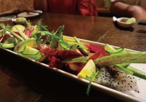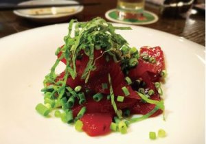 旬の食材を三宅島styleやお酒に合った食べ方でお出しいたします。写真はカツオの島唐辛子漬け。