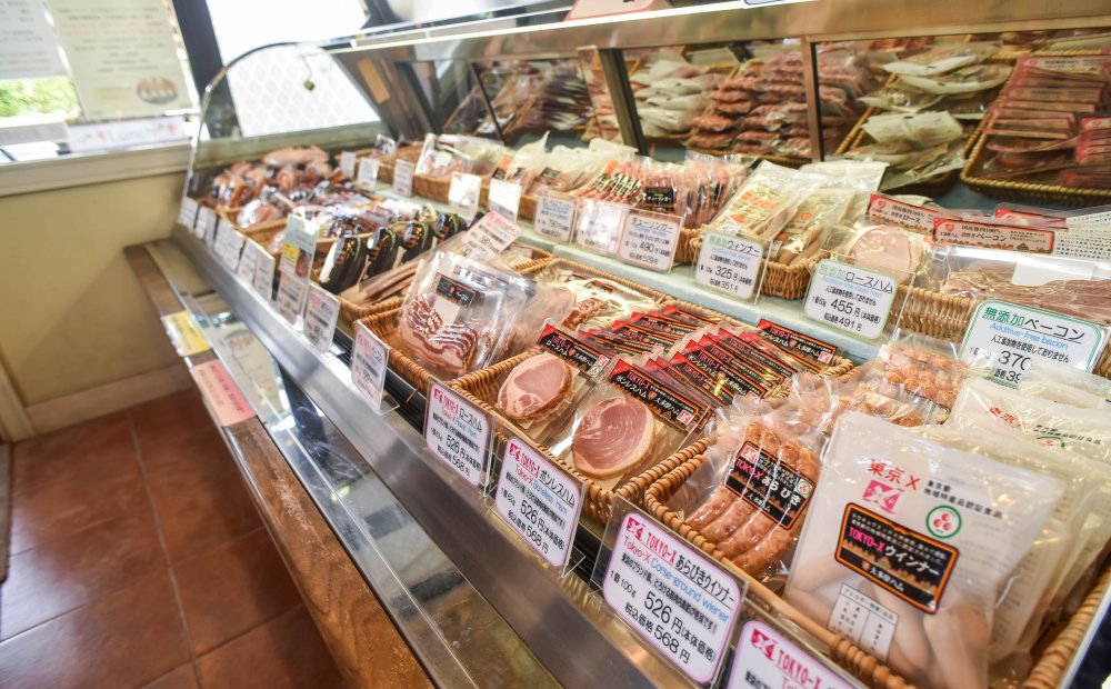 東京都が開発したTOKYO-Xや東京うこっけいなどをドイツ式のハム技術で加工したハムは共に東京都の「地域特産品」に認定されました。TOKYO-Xは口の中で軽くほぐれ、しかもジューシーな霜降り肉です。