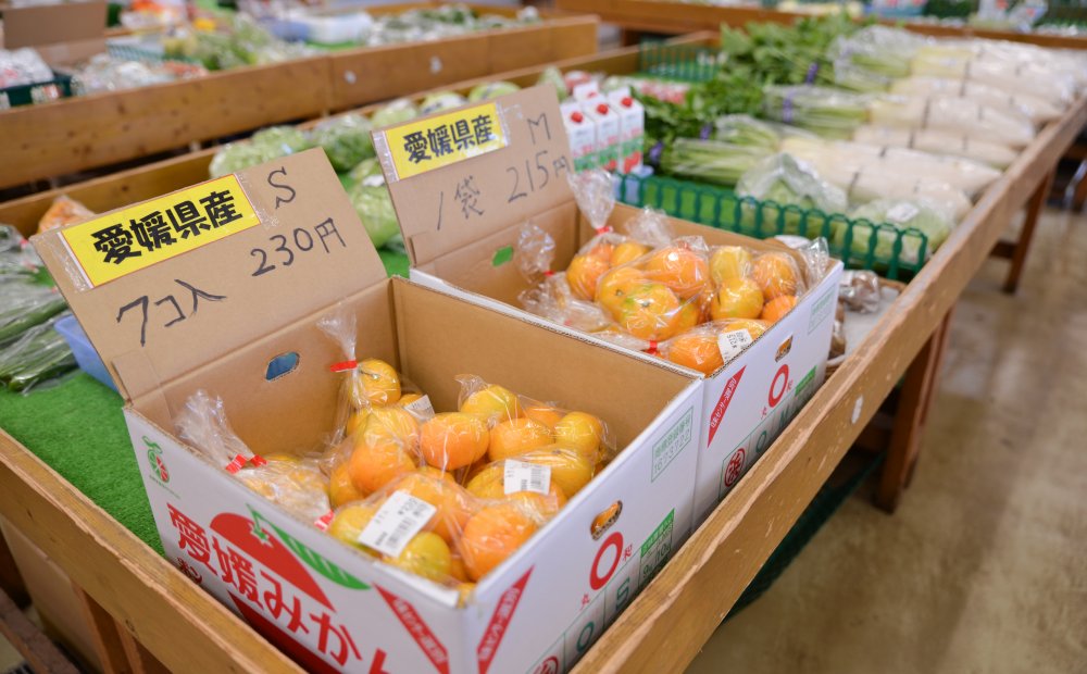 地元で採れた新鮮で安全・安心な野菜や果物、切り花が揃います。コンニャクなど季節の商品も充実。毎週火・金曜は10時から鮮魚店もオープンし、小田原港でその日に水揚げされた魚を販売しています。