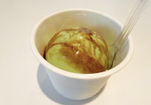 きなこをたっぷりと練り込んだアイスに黒蜜をトッピング。