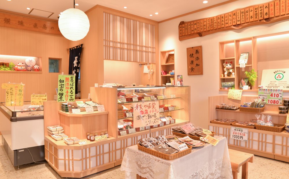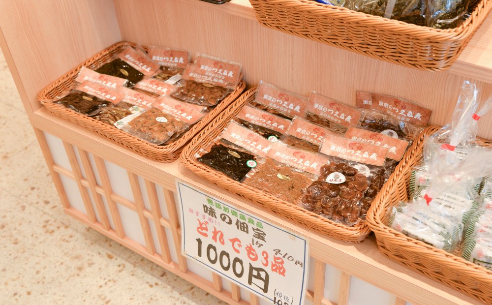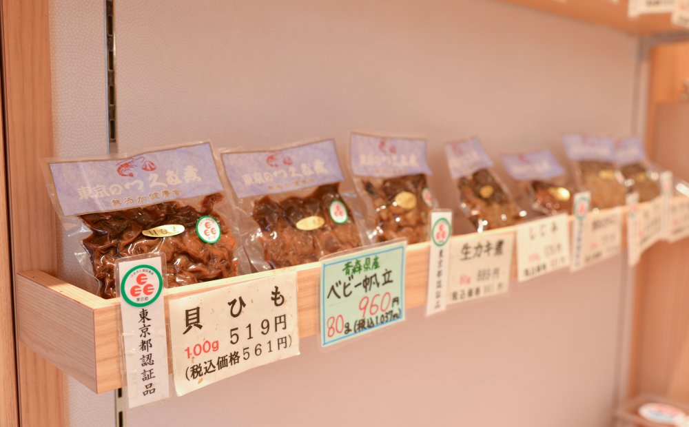 どこか懐かしさを感じる店内には、添加物ゼロの佃煮が並んでいます。衛生管理の行き届いた近代的な設備の中で作られた佃煮は、素材の味を生かした優しい味わいが人気の秘密。あさり、あみ、昆布が人気ベスト3です。